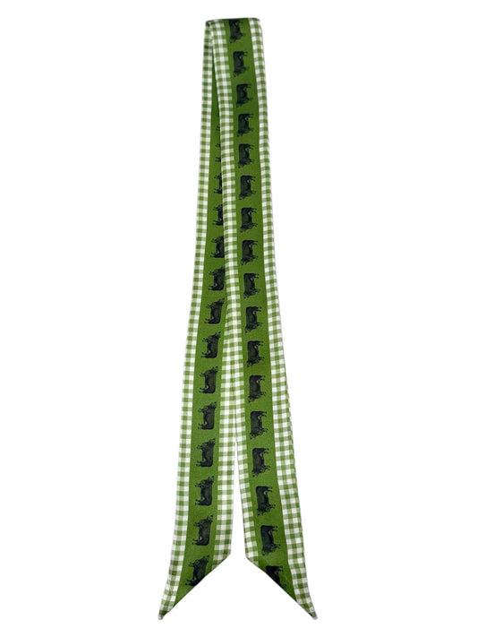 Sage Green Silk Twilly Scarf with Black Hereford Cow