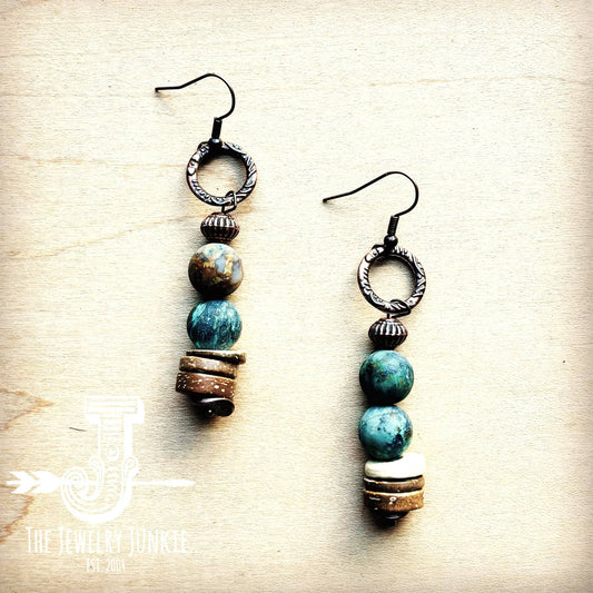 Frosted African Turquoise and Wood Earrings