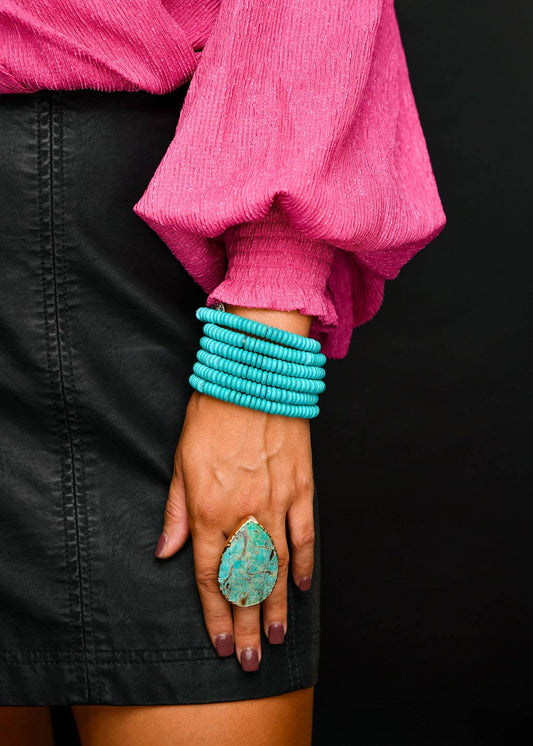 Adjustable 2" Gold Turquoise Stone Ring
