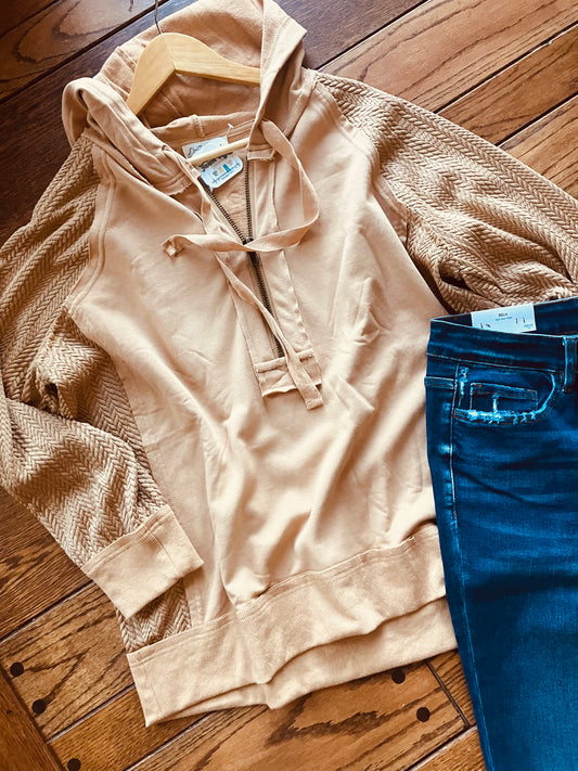 Contrast Sleeve Half Zip Hoodie Plus