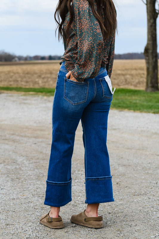 High Rise Trouser Hem Vintage Flare Jeans Inseam 33"