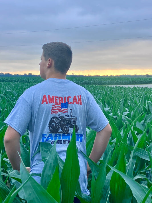 Patriotic Western 'American Farmer' Grey Graphic Tee