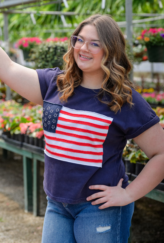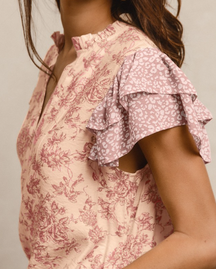 V Neck Roll-Up Short Sleeve Loose Fit Crinkled Top