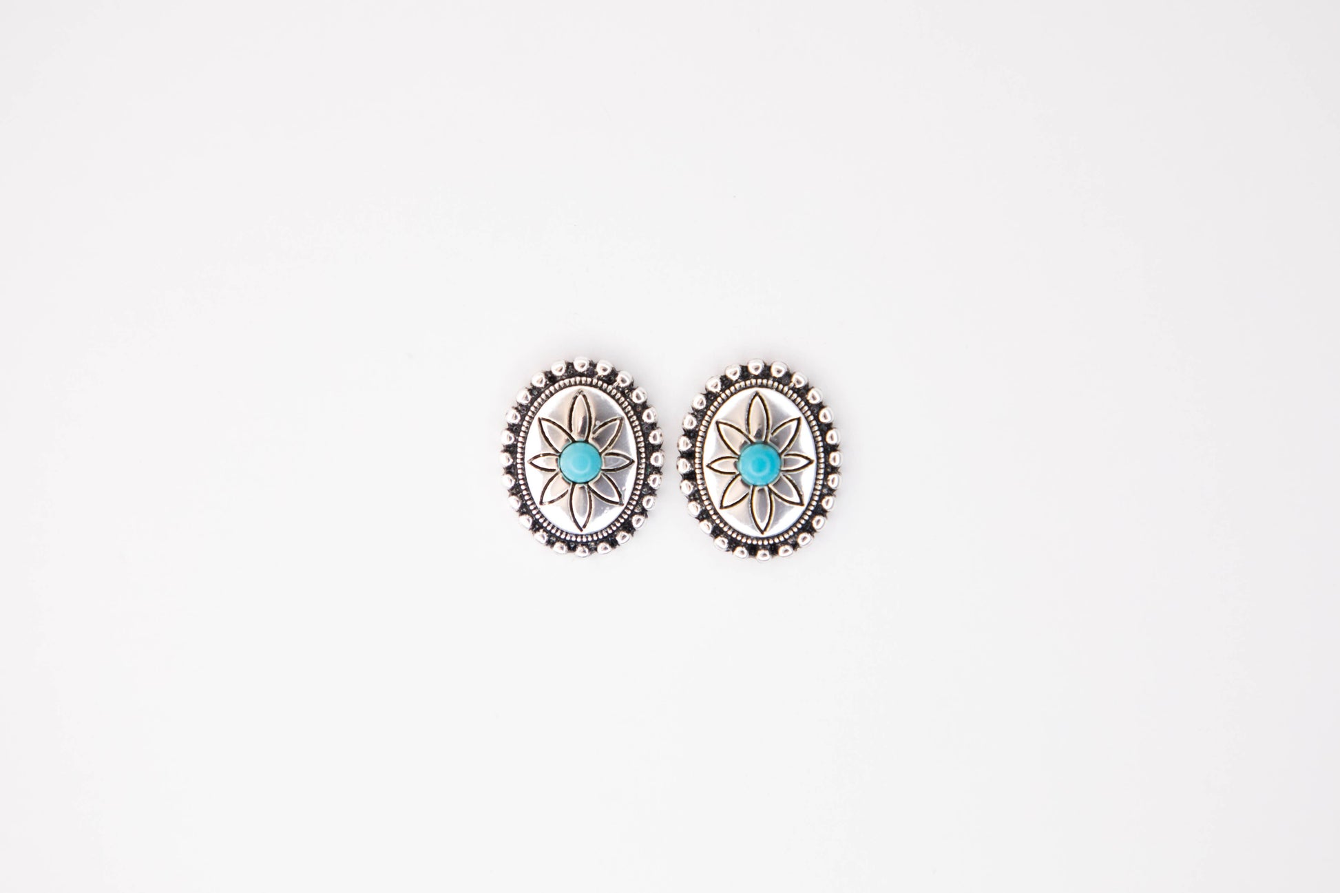 Oval Flower Concho Post Earring w/ Turquoise Accent