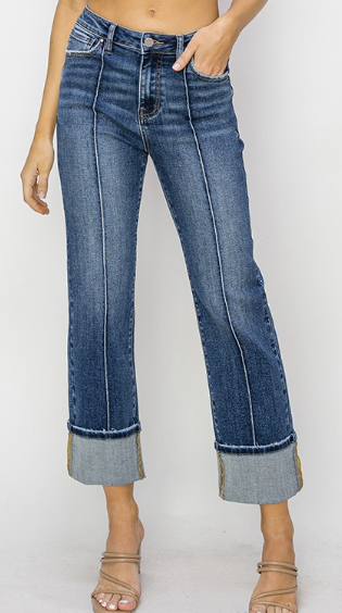 Elevate your denim game with these high rise straight jeans, designed to flatter and flex with your every move. Featuring a timeless straight-leg silhouette and an ankle-grazing cuffed hem, they’re the perfect blend of structured style and everyday comfort. Crafted from a soft stretch cotton blend, these jeans hold their shape while offering just the right amount of give.