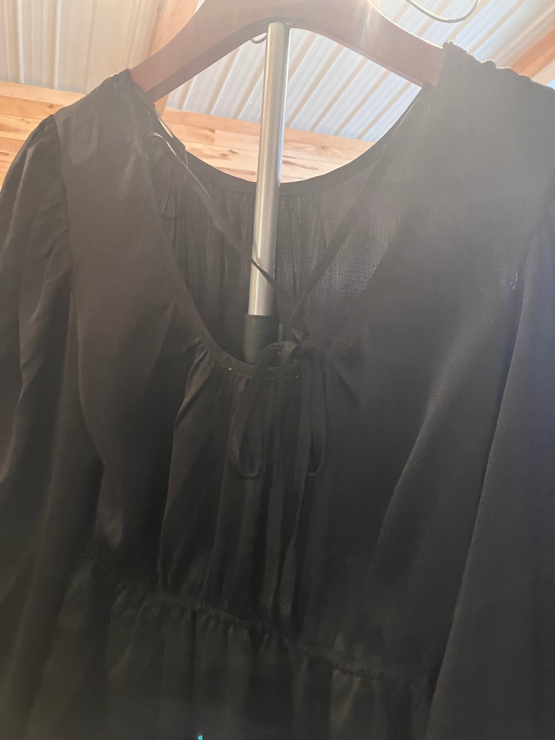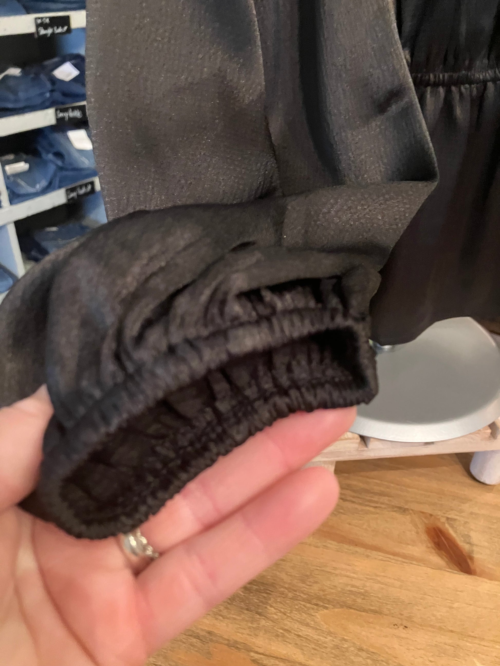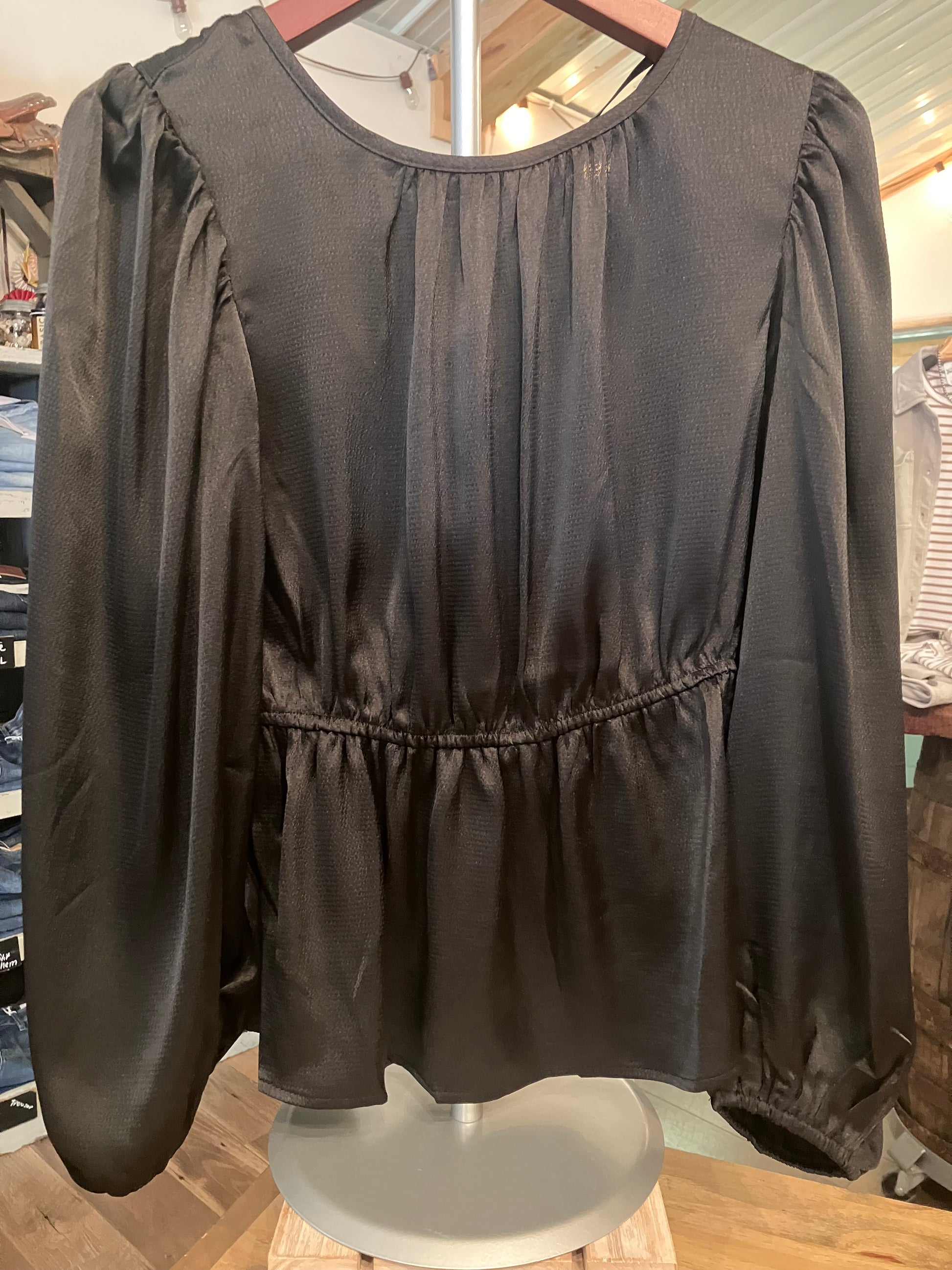 Puff Sleeve Satin Top with Back Tie and Elastic Waist