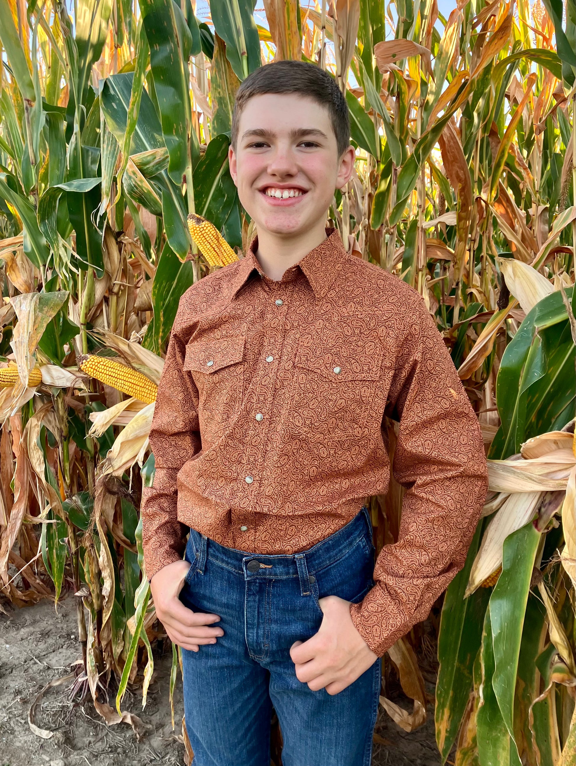 Boys Wrangler 20X Rustic Brown Pearl Snap
