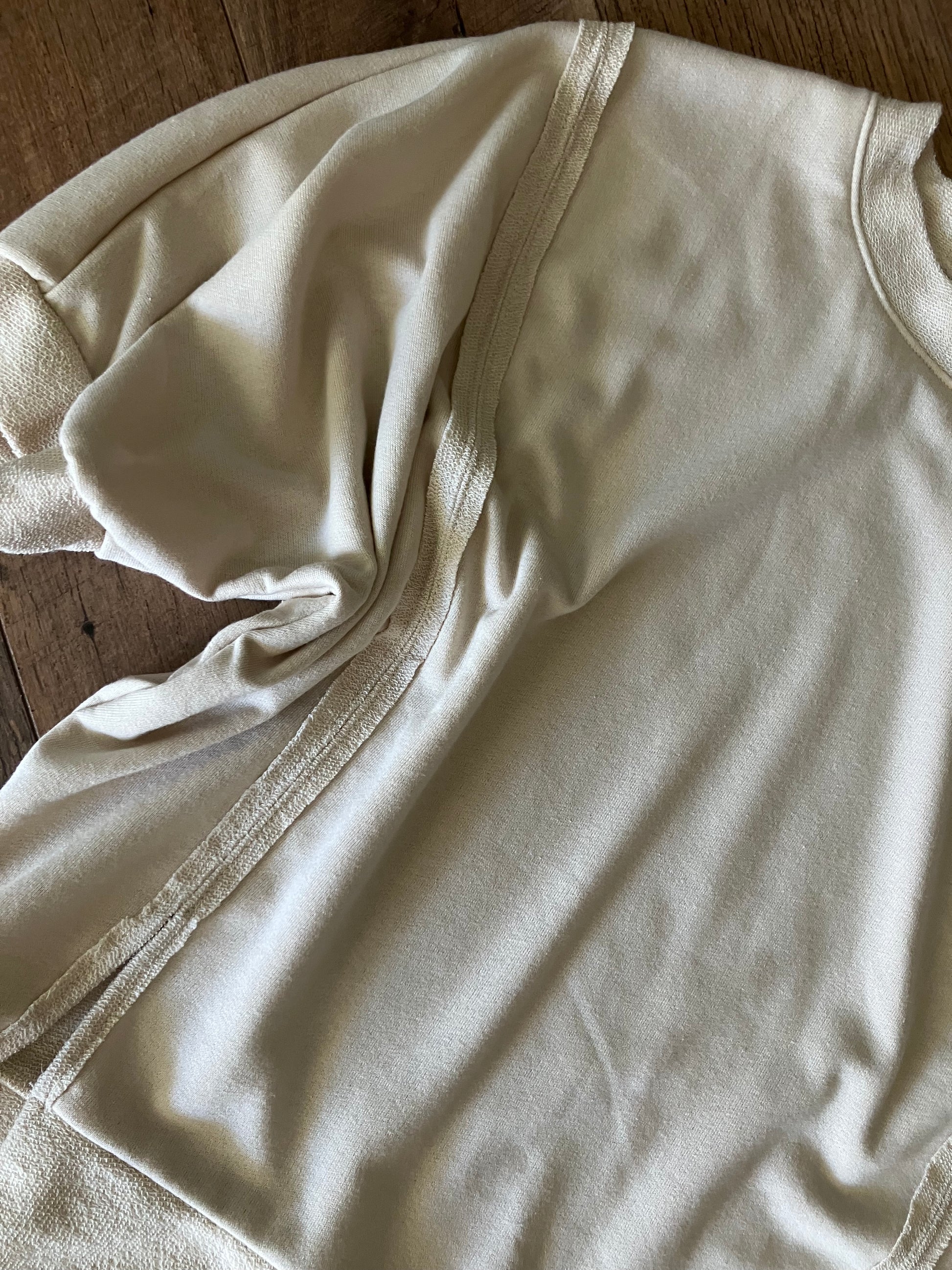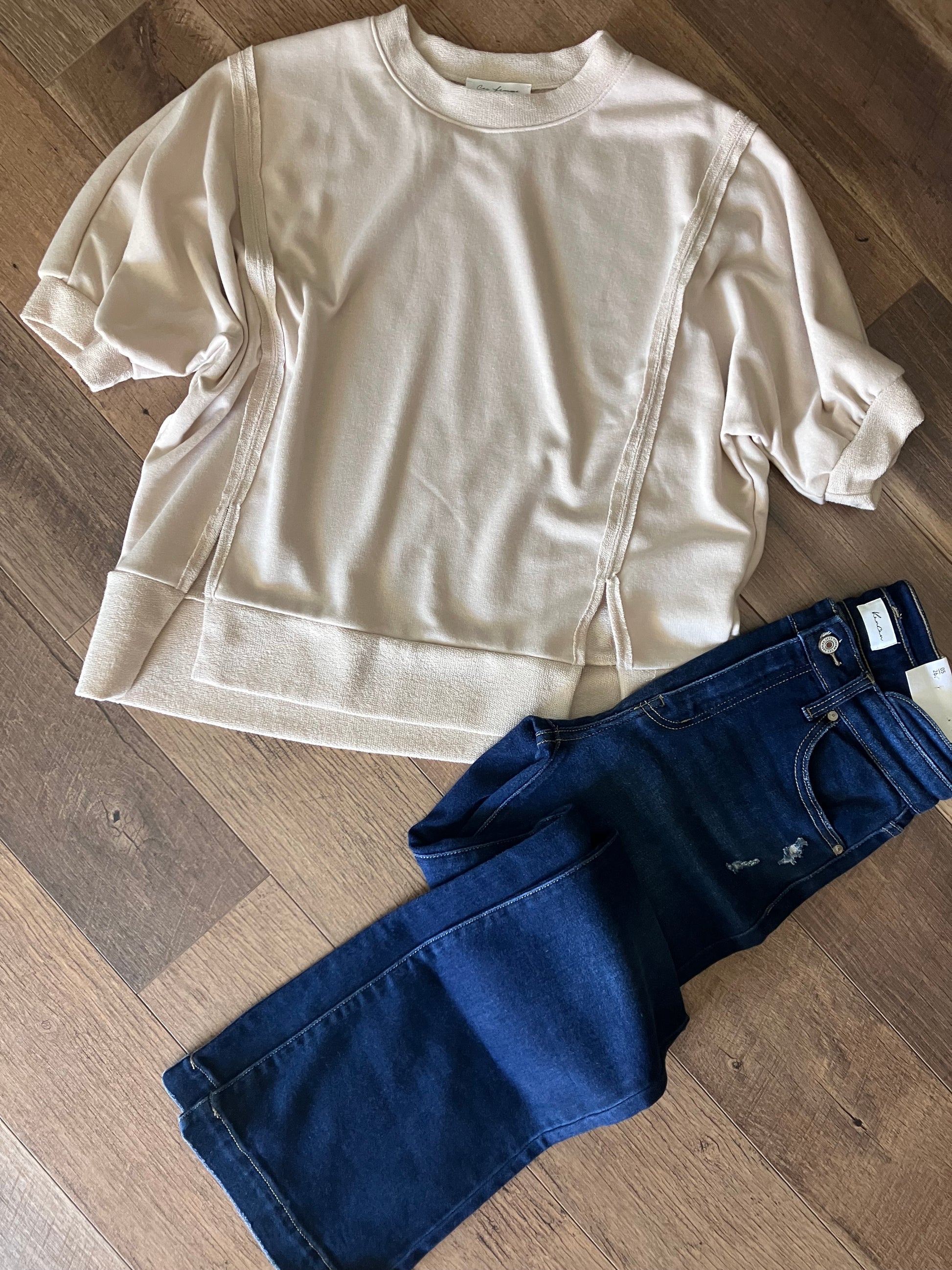 Solid Puff Sleeve Top -Solid knit fabric -Quarter puff sleeve -Side slit details -Oversize boxy fit
