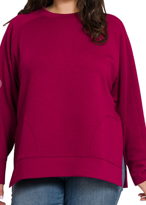 PLUS SCUBA ROUND-NECK PULLOVER WITH SIDE SLITS -SOFT AND STRETCH -SIDE SLITS