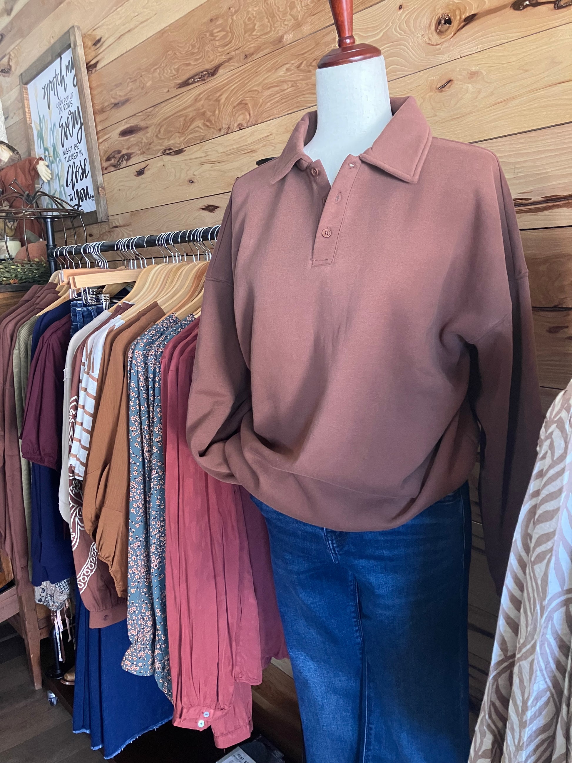 Discover the perfect balance of comfort and style with this fleece pullover. Designed with a polished polo collar and a relaxed silhouette, it exudes effortless casual elegance. Ribbed cuffs add subtle structure while ensuring a comfortable fit, making it a versatile piece for every season.