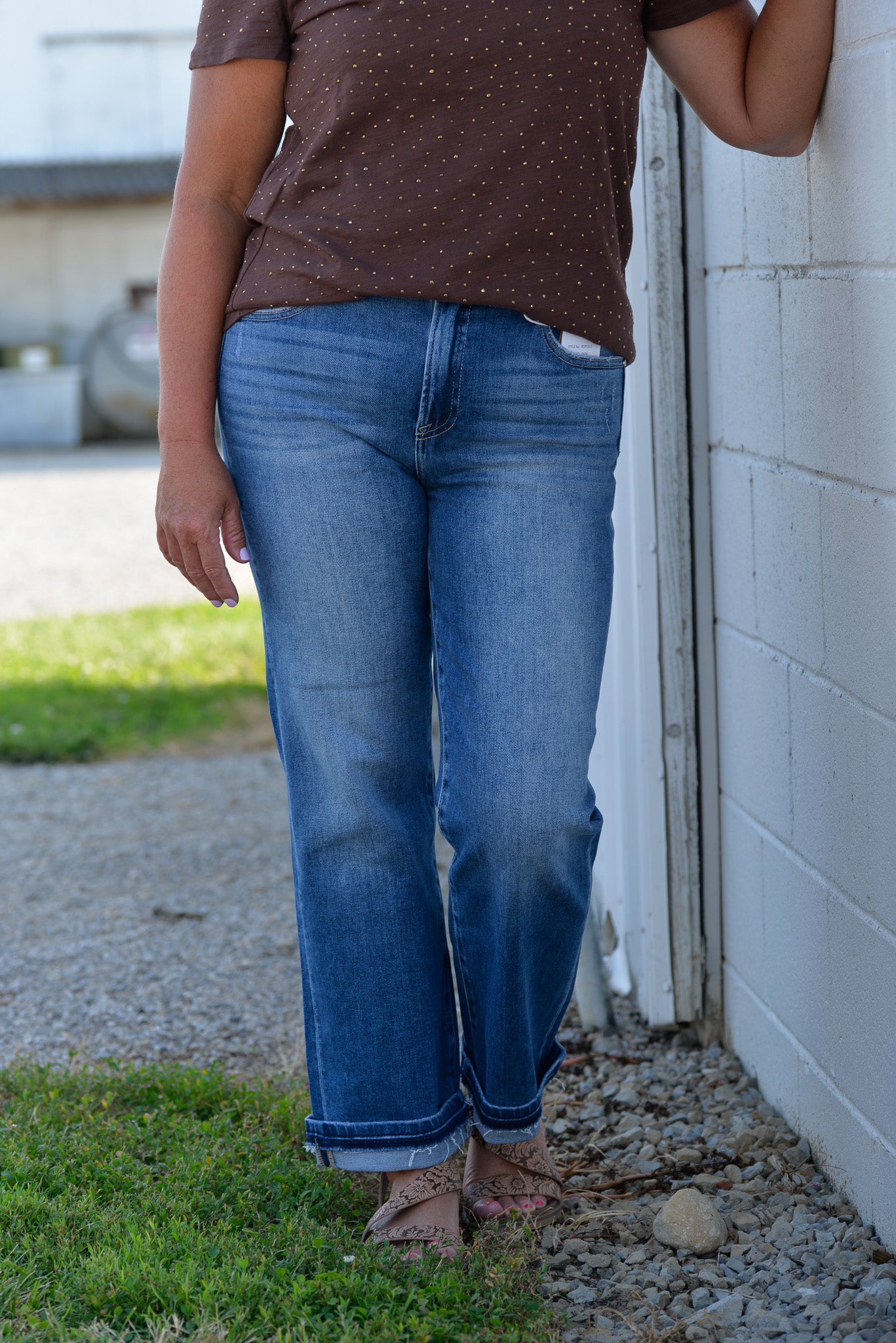 Classic with a modern twist, these mid-rise straight jeans are your new everyday favorite. Designed with a versatile cuffed hem, they hit right at the ankle for a flattering finish that pairs effortlessly with sneakers, sandals, or boots. Made from a soft, stretchy cotton blend, they offer the perfect balance of comfort and structure for all-day wear.