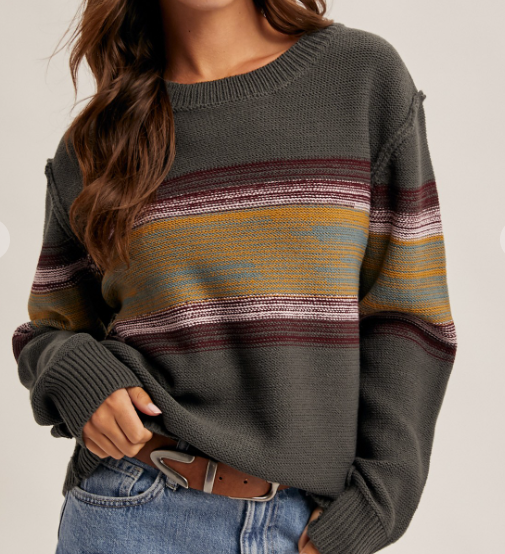 CREW NECK MULTI COLOR MIX BOYFRIEND SWEATER -100% ACRYLIC