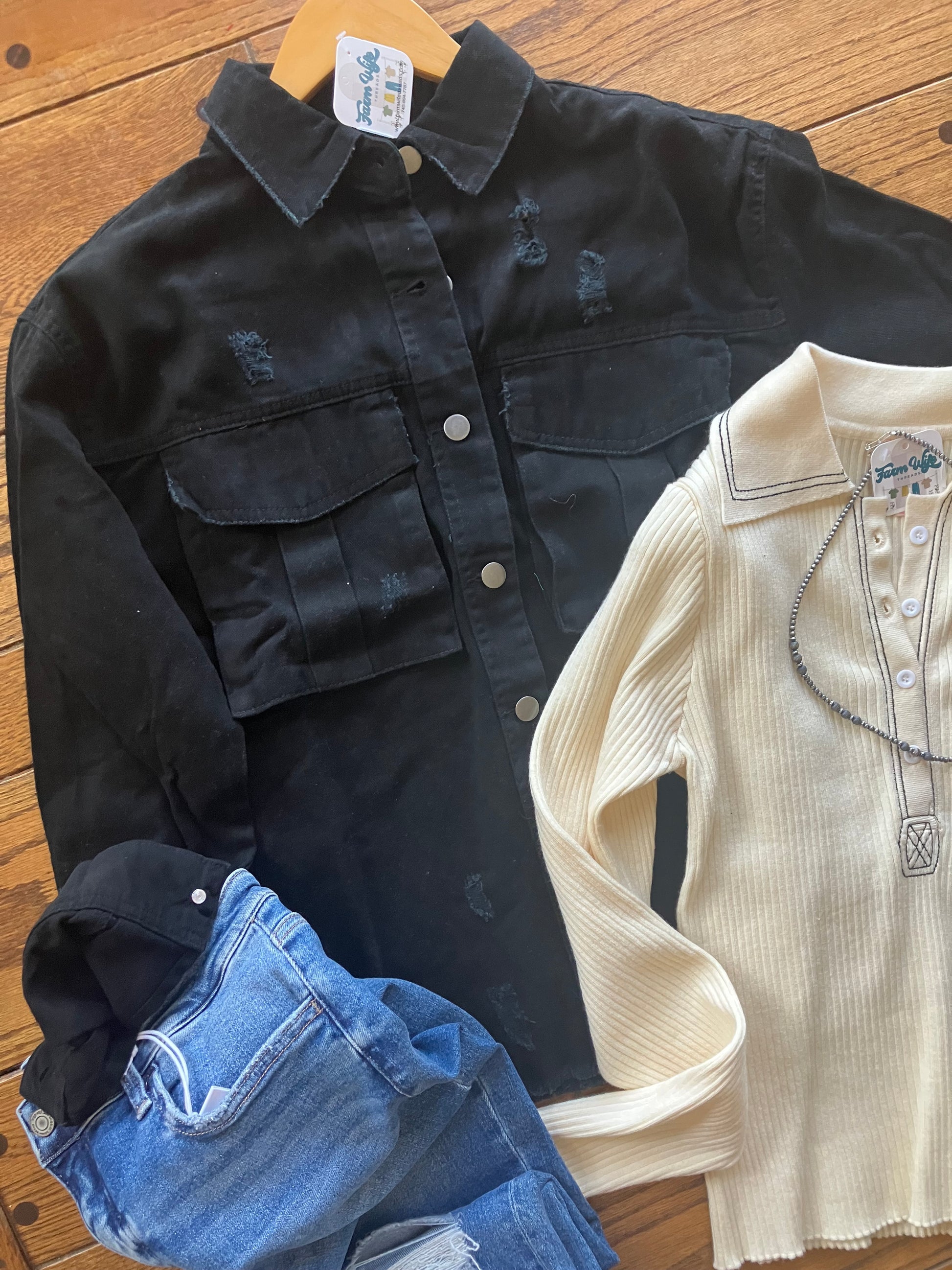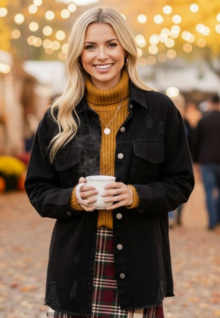 Distressed Black Shacket