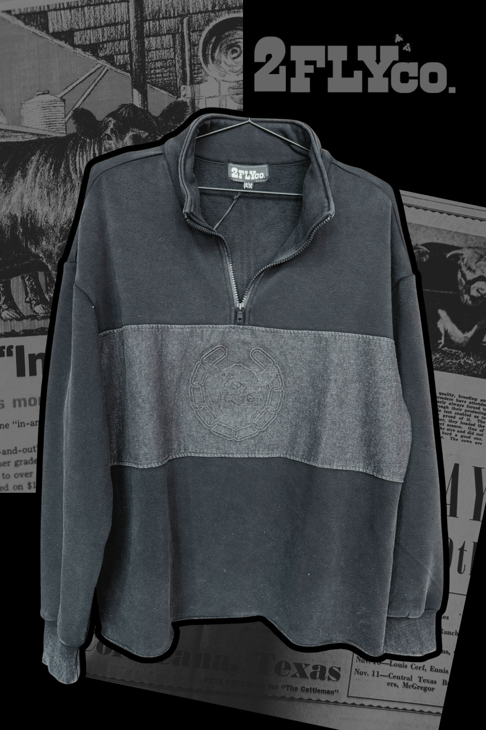 Hand drawn cattle quarter zip charcoal grey pullover. It is the absolute softest.