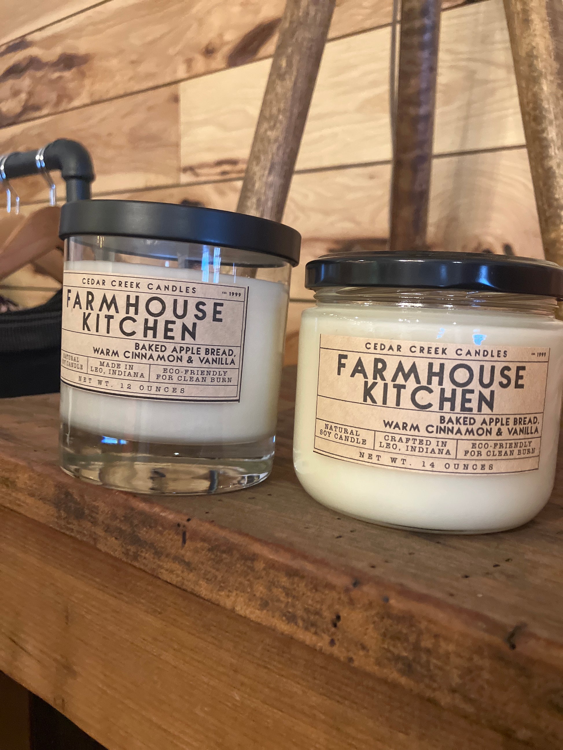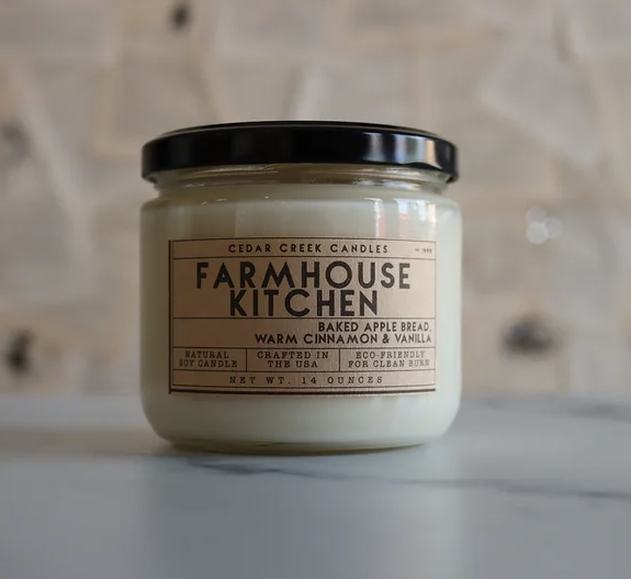 Farmhouse Kitchen is a blend creamy vanilla and a mouth-watering spice blend of ground cinnamon, clove & nutmeg. The warmth & comfort of this scent will transport you back to your grandma's kitchen and you'll feel right at home. A best-selling candle for every season.