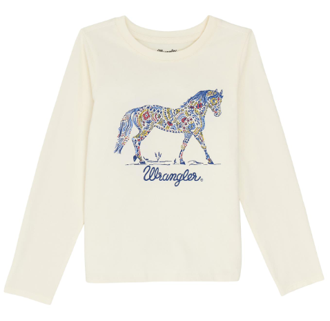 Girls Long Sleeve Wrangler Horse Tee