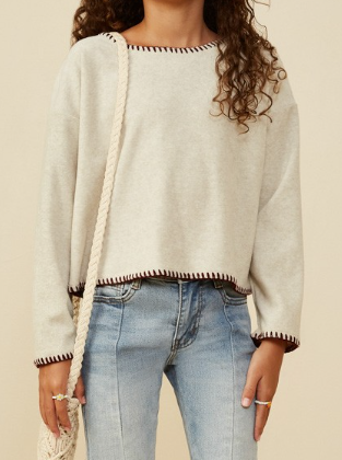 Girls Brushed Contrast Stitch Long Sleeve Knit T Shirt *Brushed Knit Fabric *Round Cut Neckline *Contrast Stitch Detail