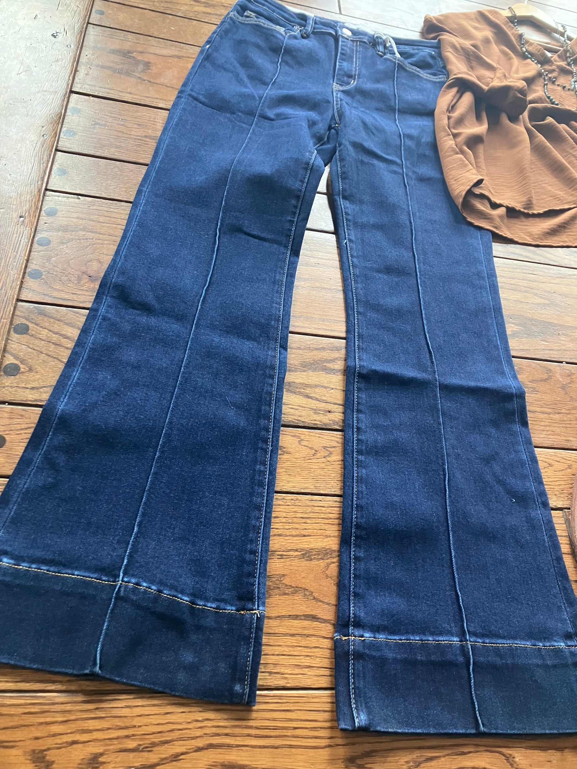 High Rise Pin Tuck Seam Bootcut Jeans