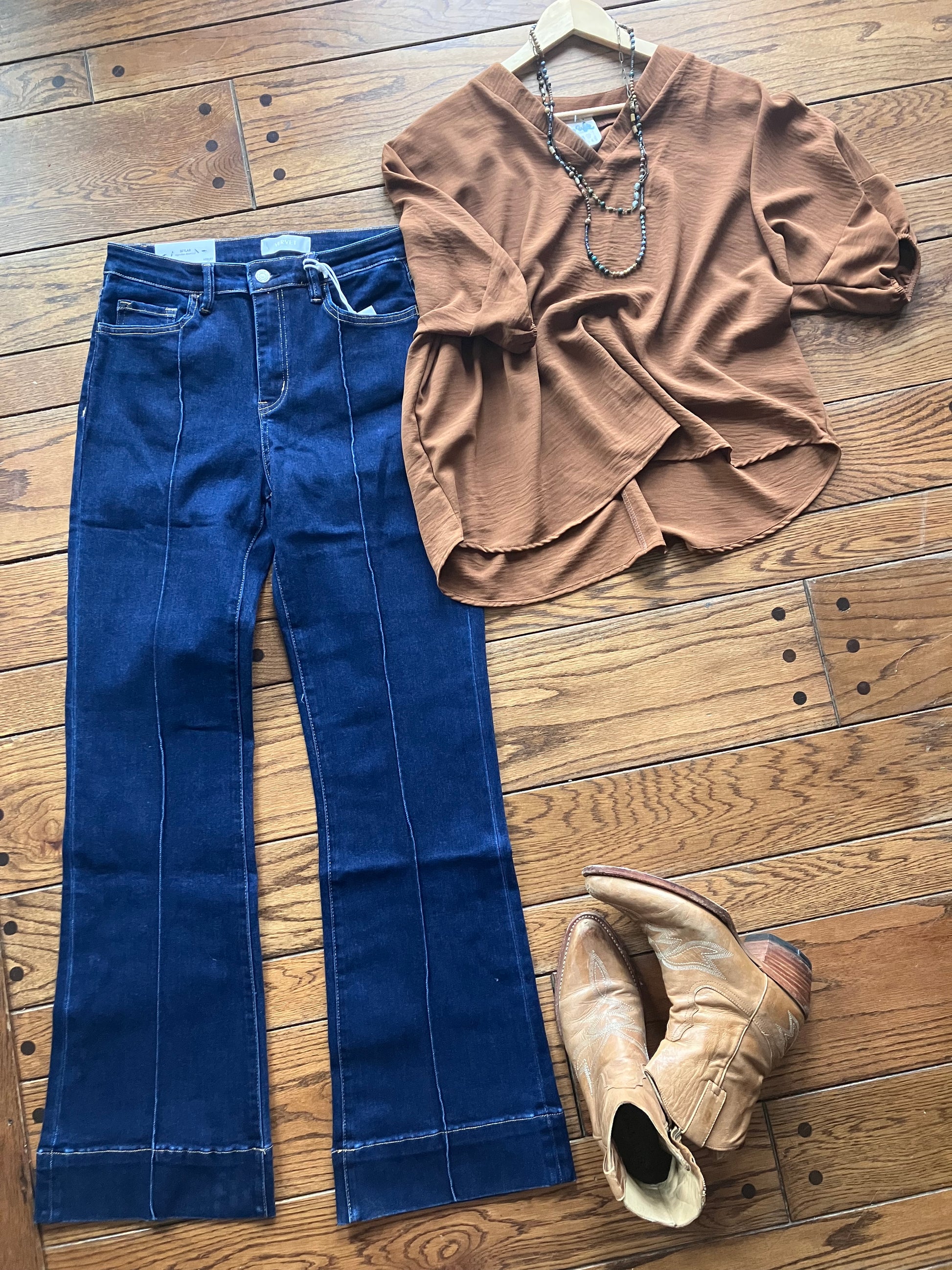 Holten High Rise Pin Tuck Bootcut Jeans 33" inseam
