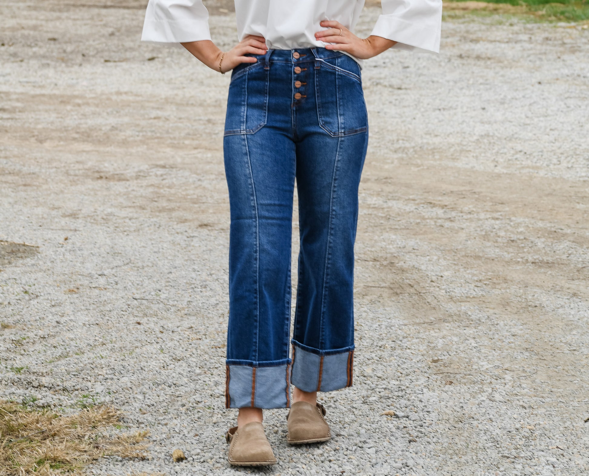 HIGH RISE CROP STRAIGHT CUFFED JEANS - Rise 10 1/4" | Inseam 28"(After cuff) 33"(Before cuff) in size 3/26 - Cuff can be release