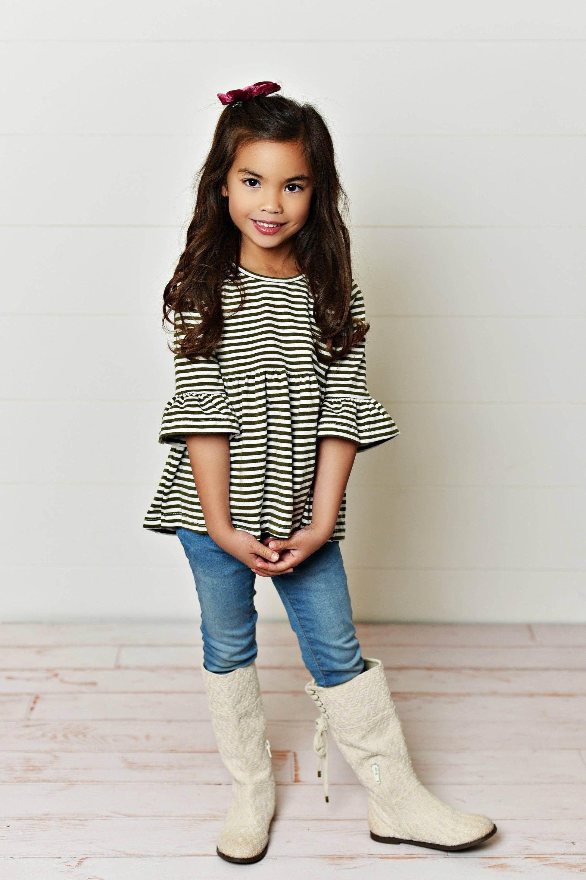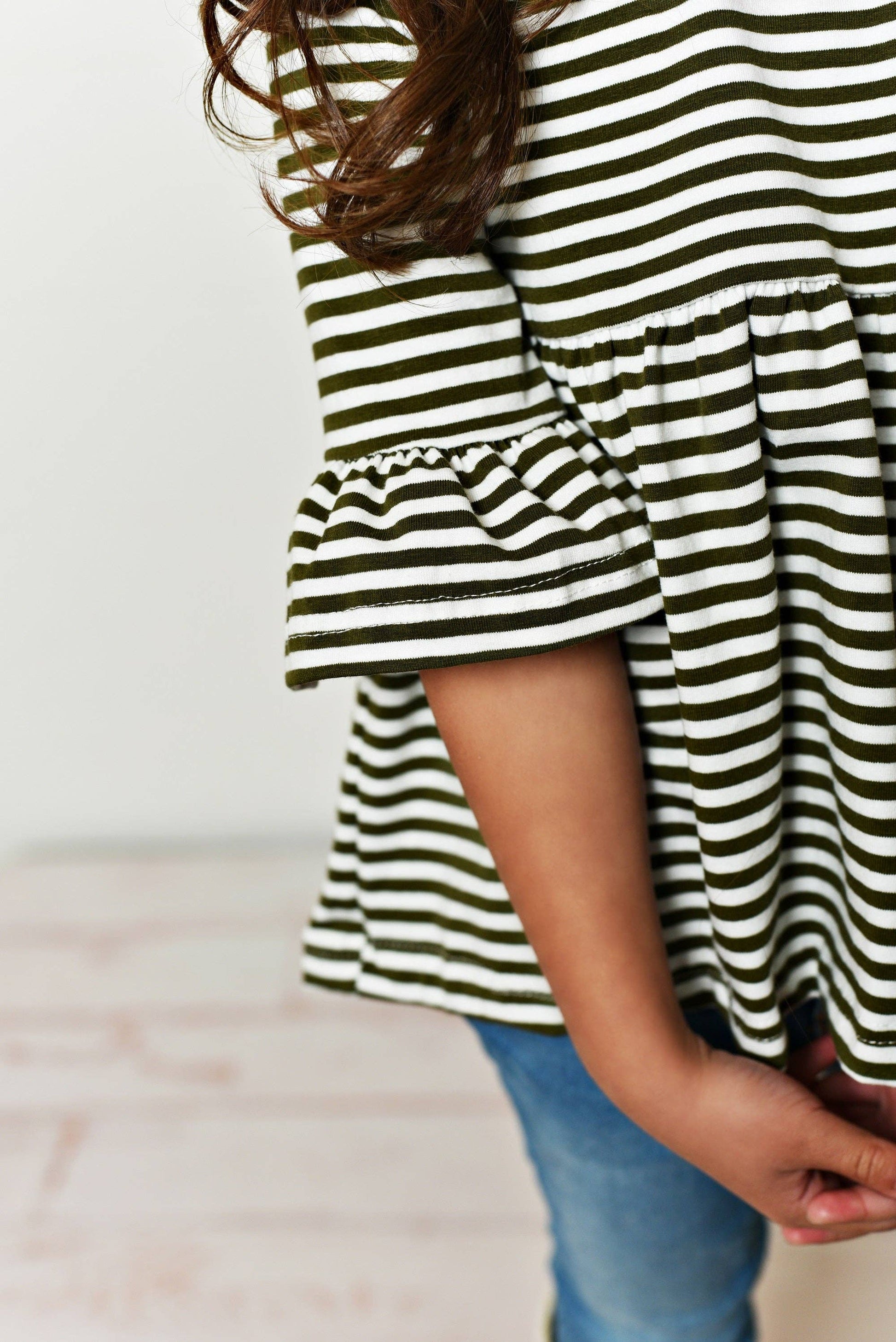 Girls Green Stripe Ruffle Sleeve Shirt Blouse