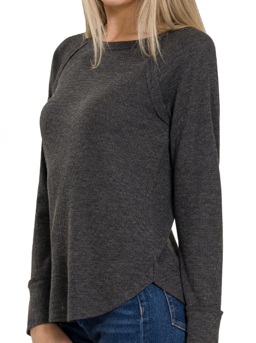 BABY WAFFLE LONG SLEEVE TOP - ROUND HEM - RAGLAN SLEEVE