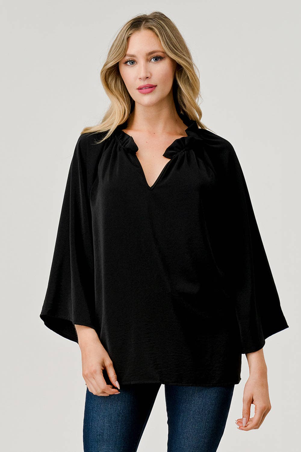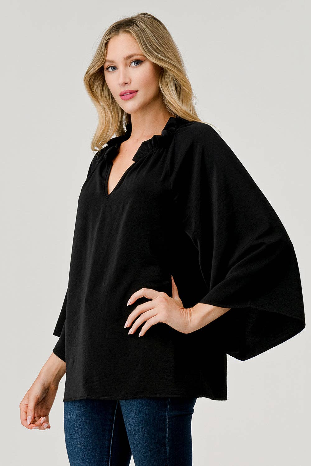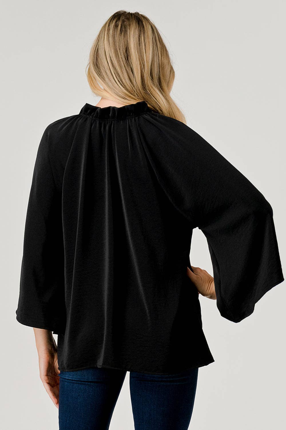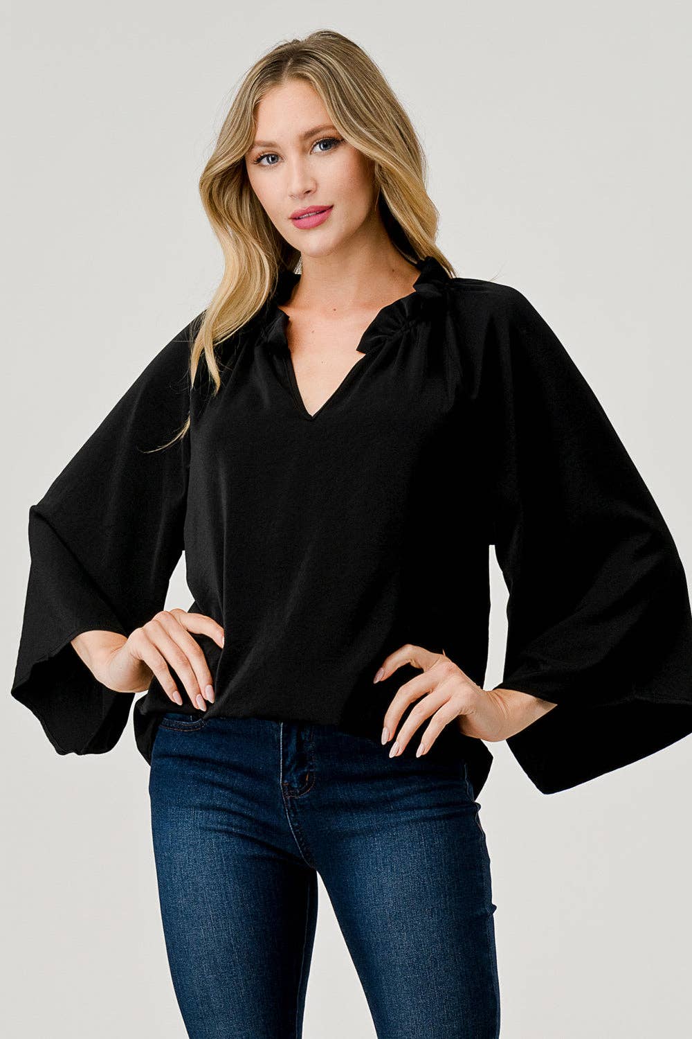 Lizzie Long Bell Sleeve Ruffle Neck Blouse PLUS