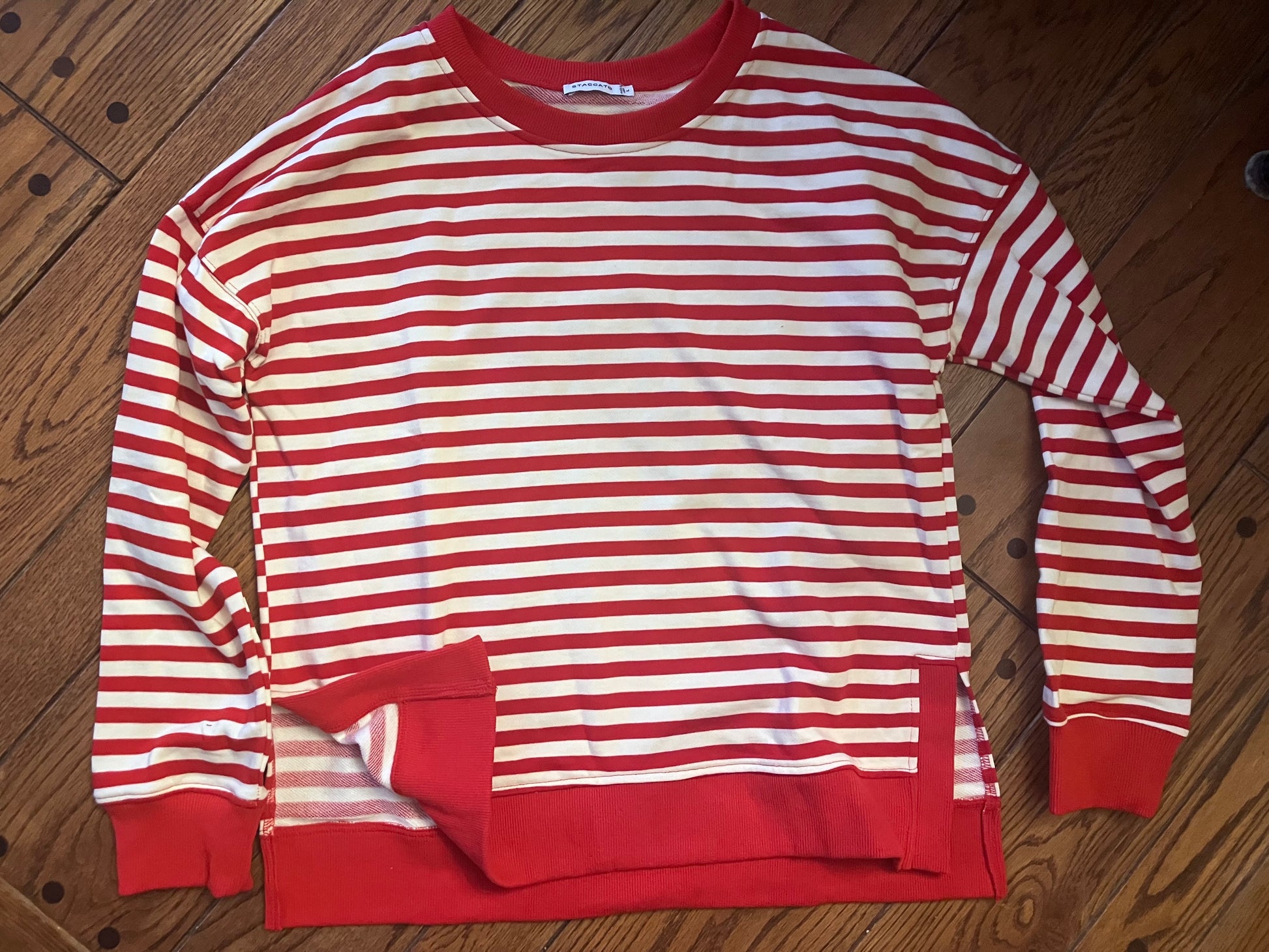 CREW NECK, COLOR TRIMMED, LONG SLEEVE, STRIPED SWEATSHIRT