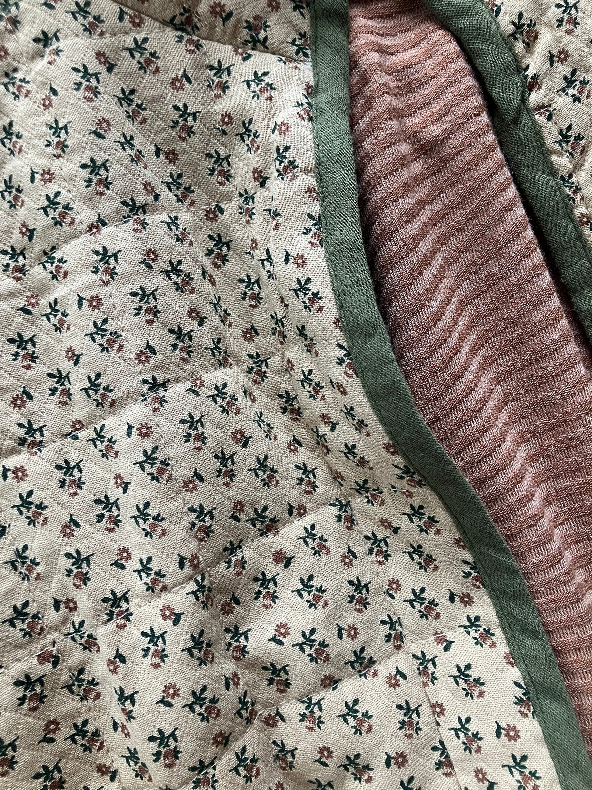 Cotton Print Stand Collar Long Sleeve Padded Coat - Stand collar quilted jacket featuring delicate floral print pattern in two colorways - Premium cotton construction with contrast trim detailing along collar, cuffs, pockets and edges - Relaxed, boxy silhouette with comfortable long sleeve design - Quilted padding provides lightweight warmth perfect for transitional weather 100%COTTON | LINING:100%COTTON