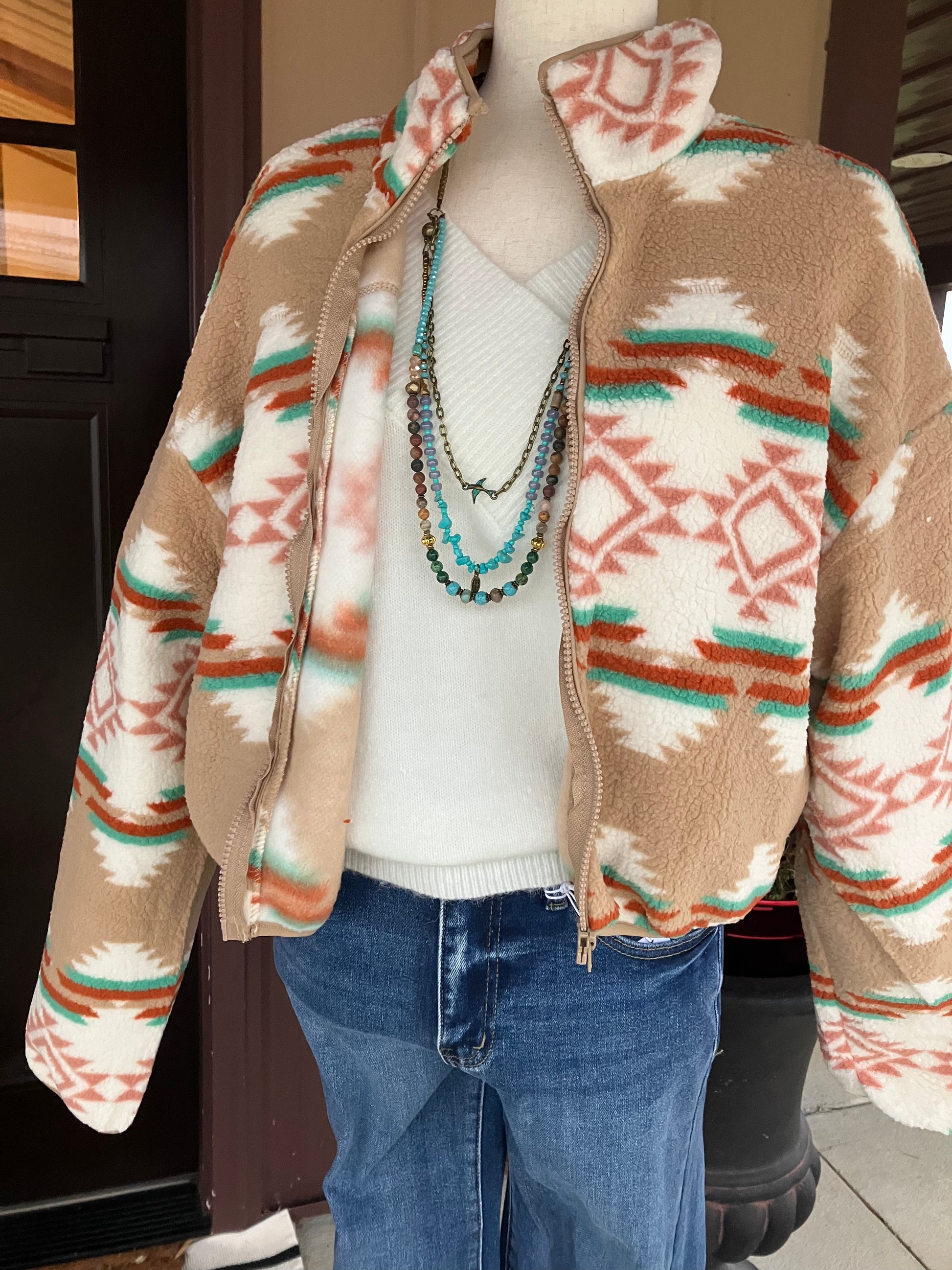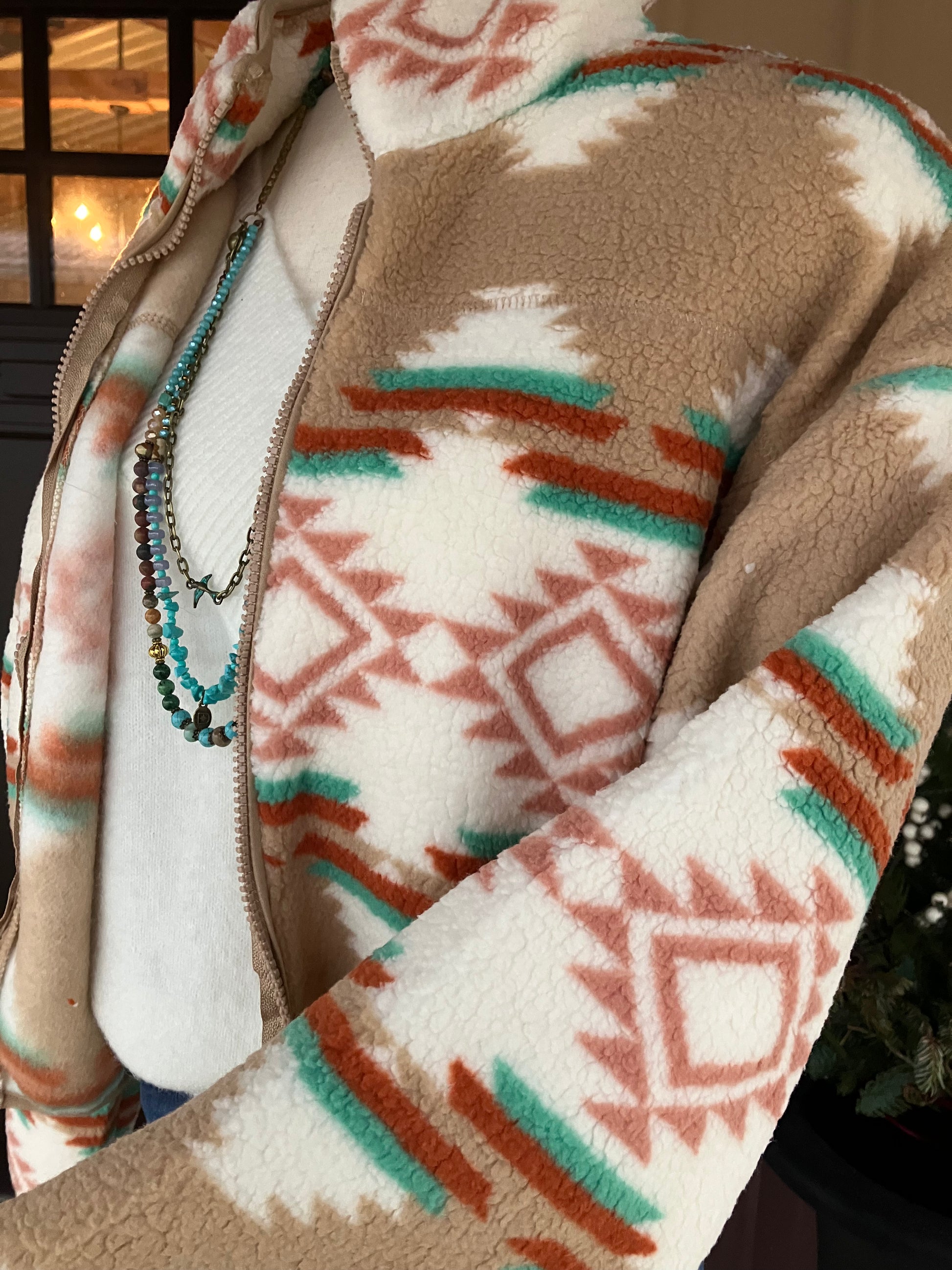 This aztec zip up jacket is lightweight yet the warmest and coziest for all season long wear.