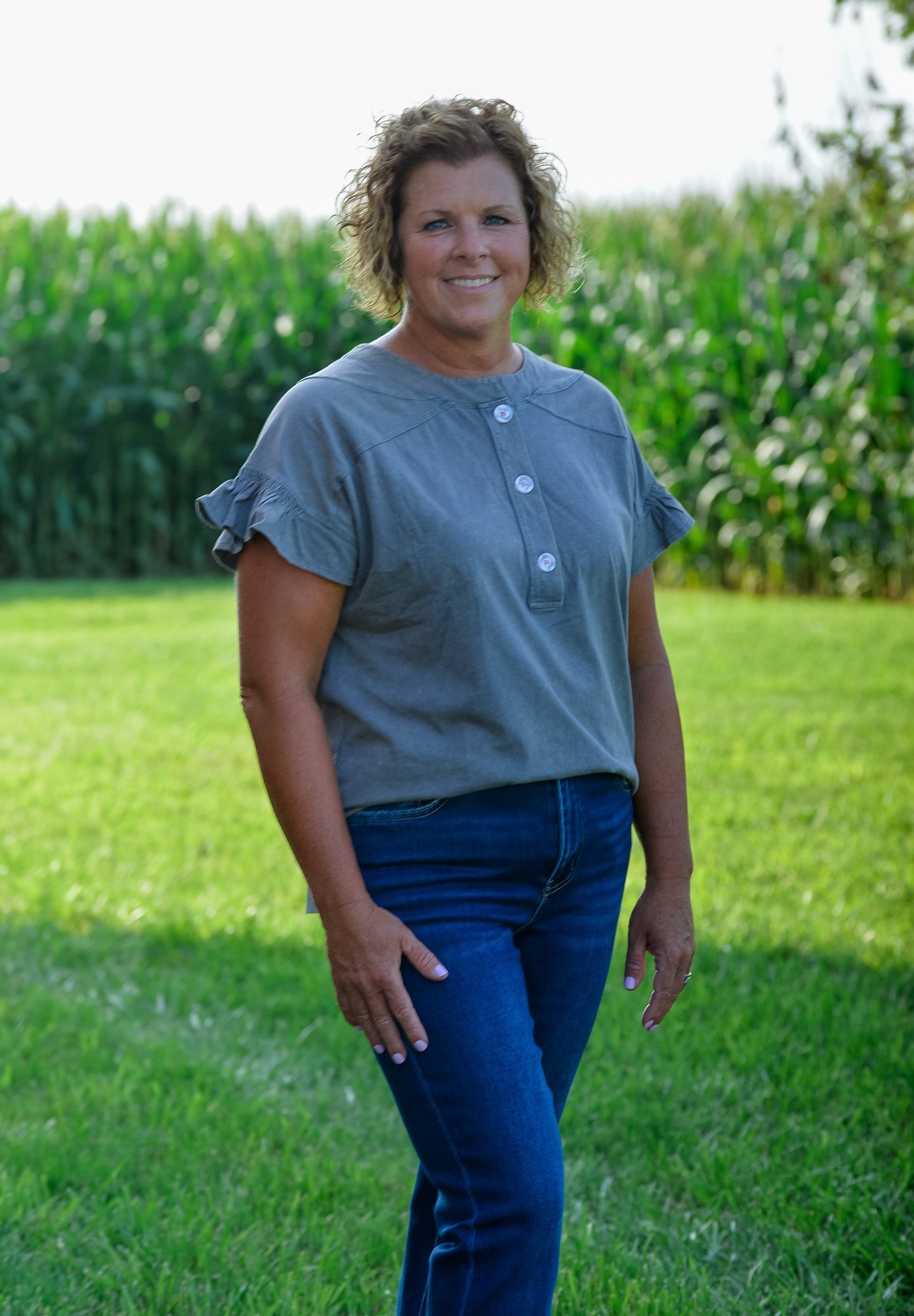 Washed Half Button T-Shirt with Seaming Details in Grey