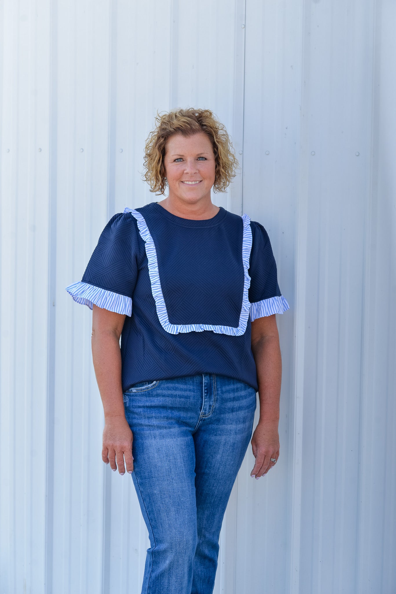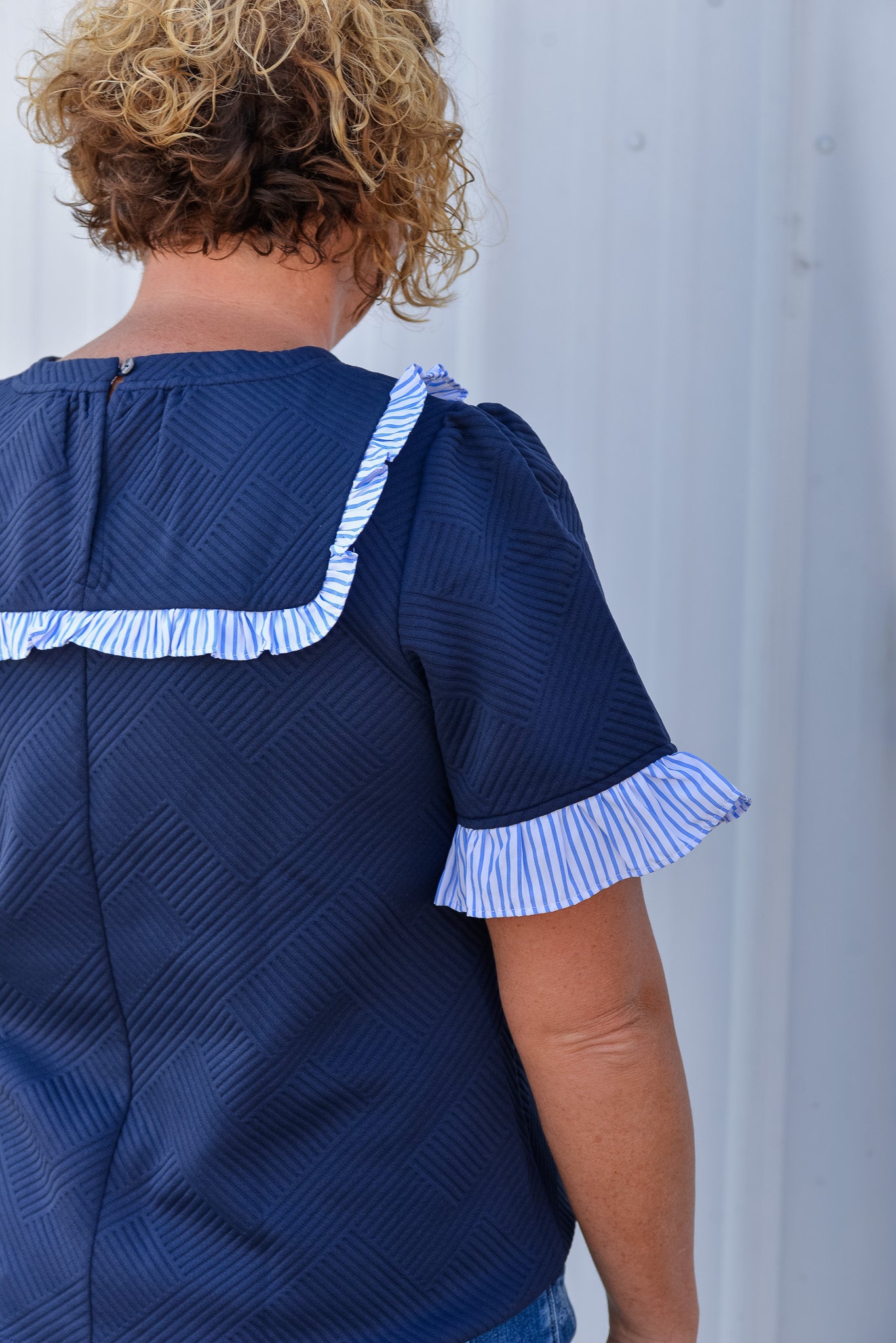 Elevate your everyday look with this charming quilted knit top, where cozy texture meets playful detail.