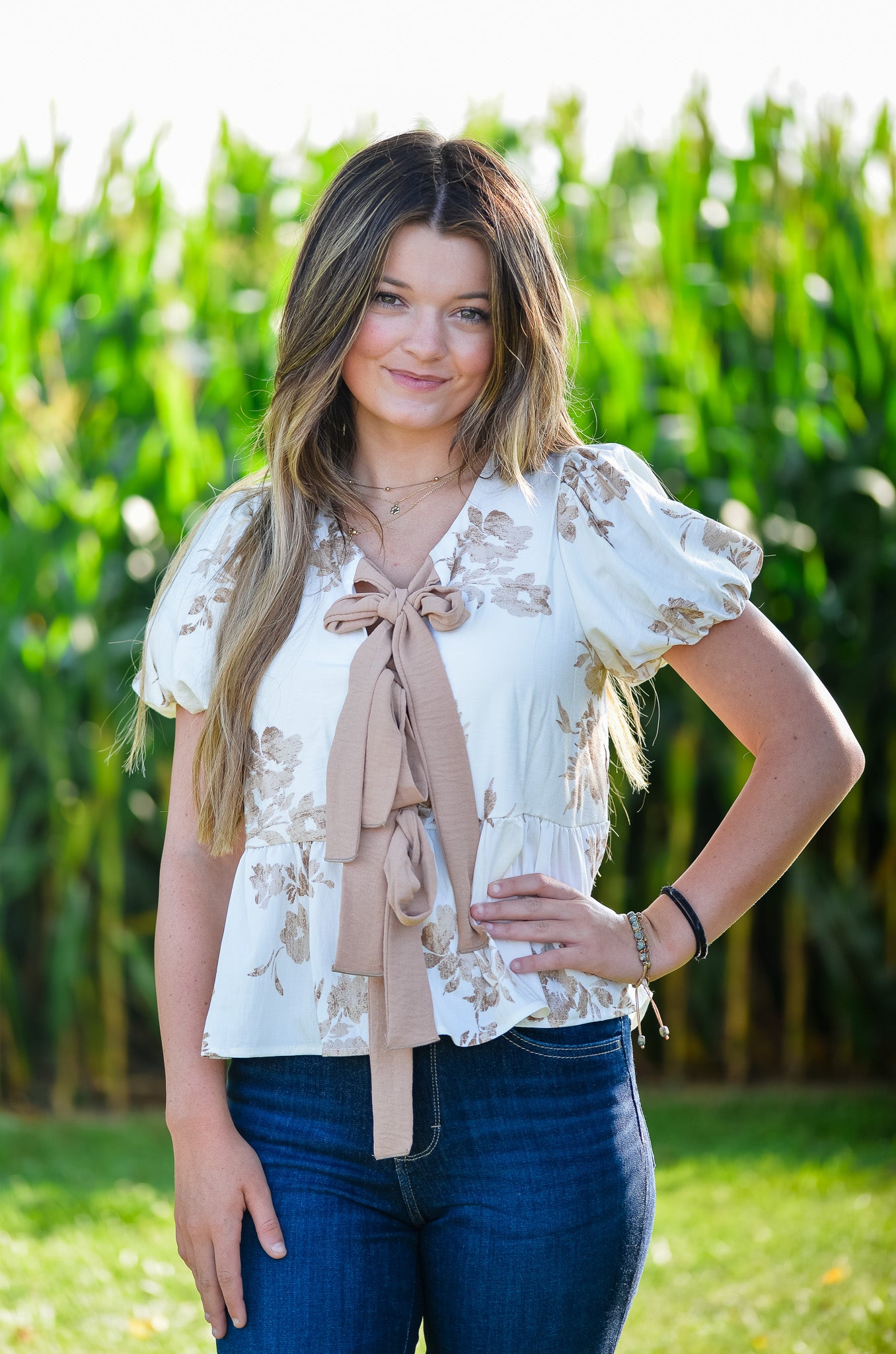 Elevate your everyday look with this vintage-inspired floral blouse featuring a timeless print and delicate ribbon details. Designed with soft, lightweight fabric for all-day comfort, this top is the perfect blend of feminine charm and effortless style.