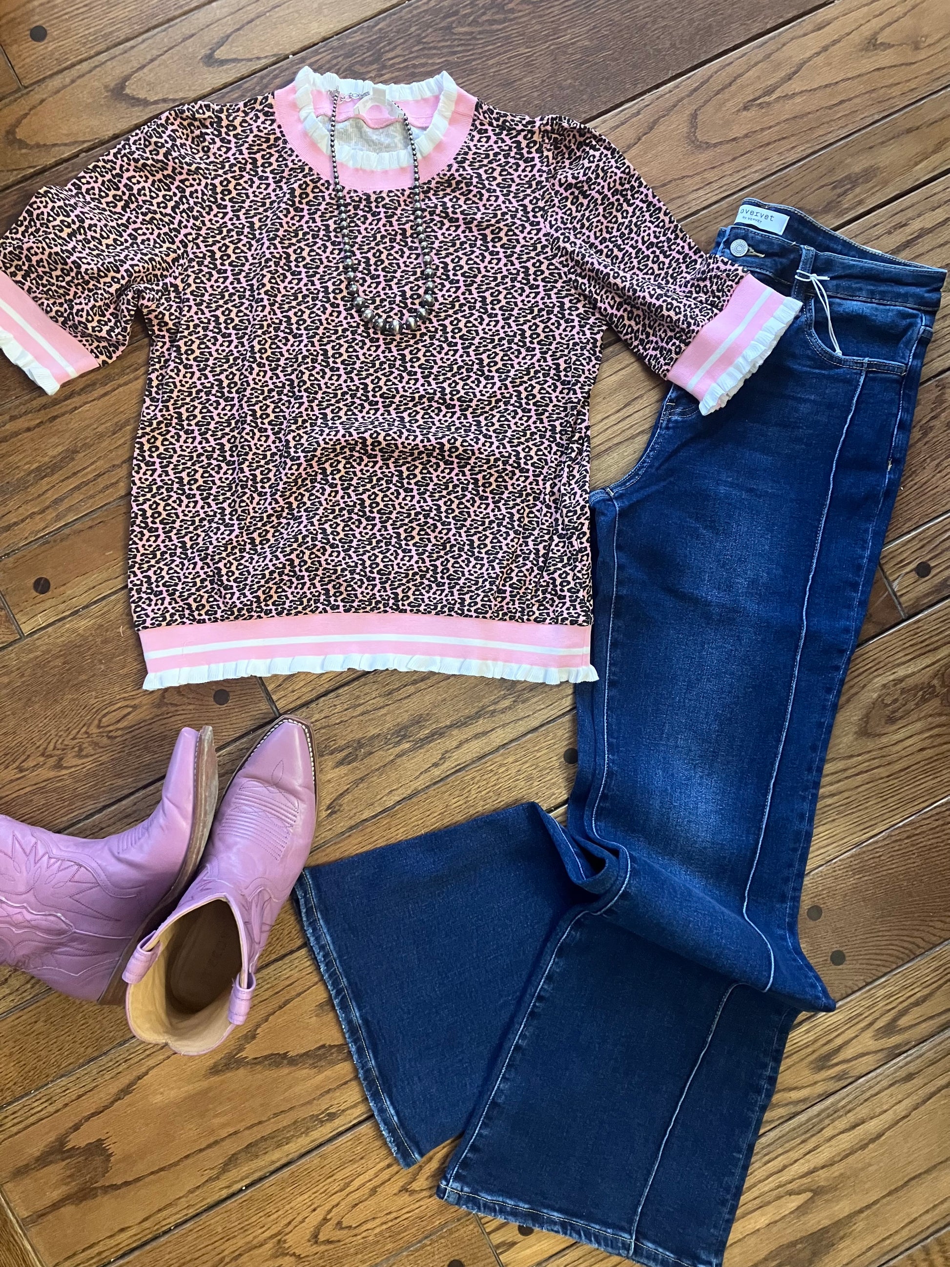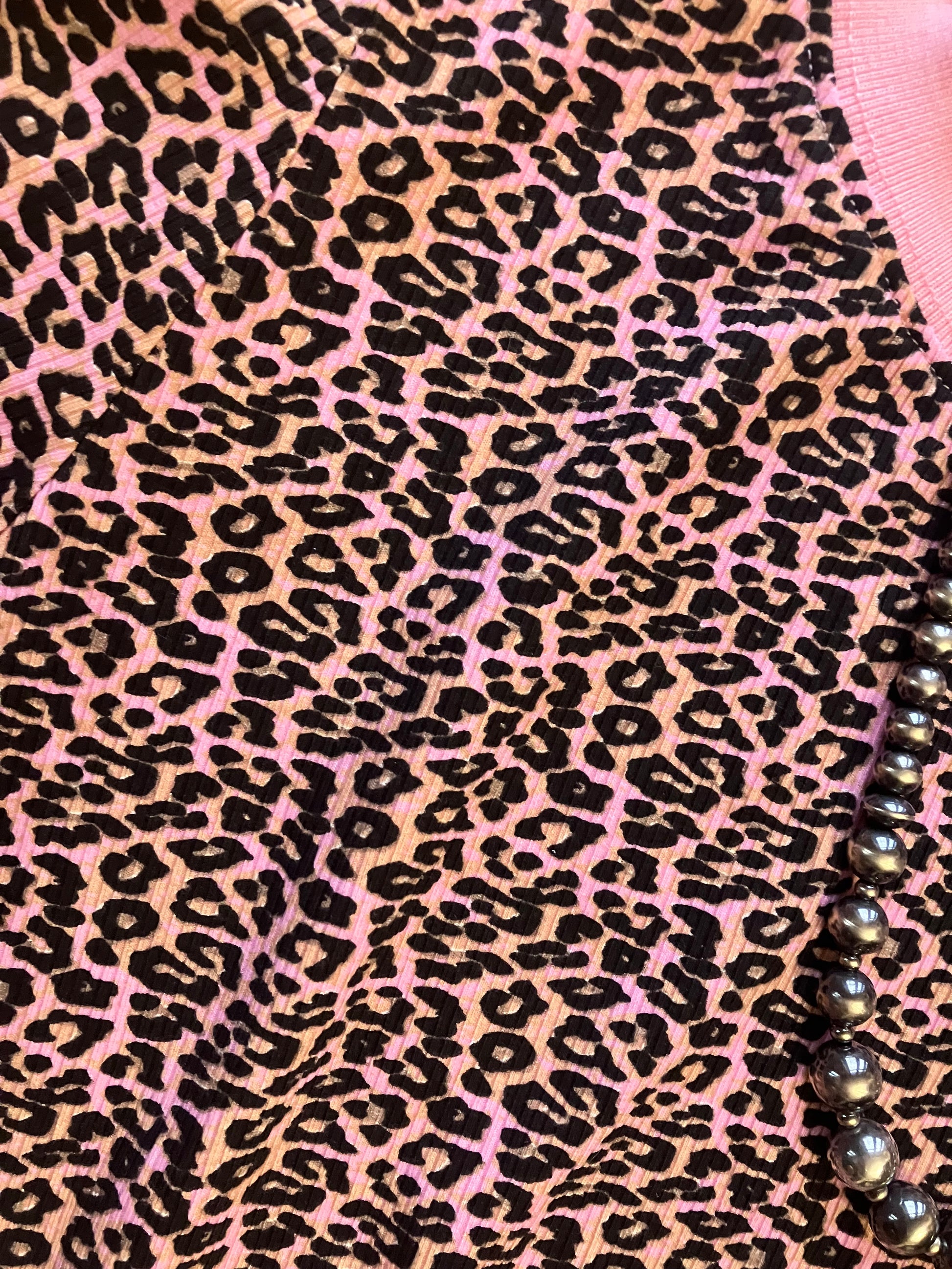 Leopard Print Knit Top With Contrast Trim